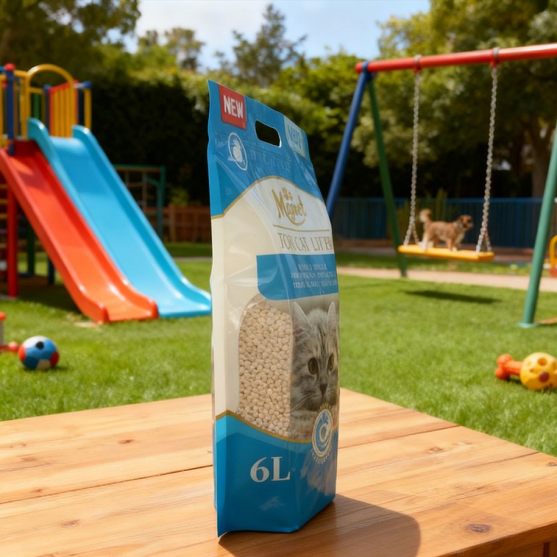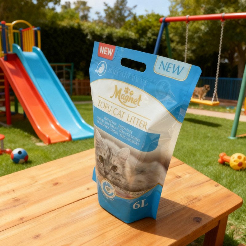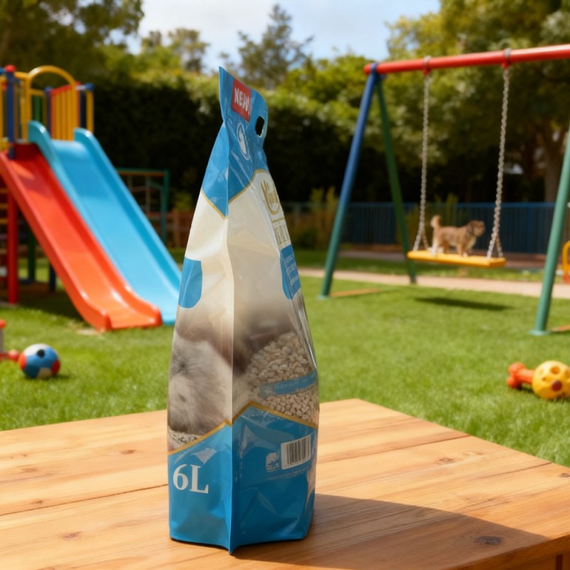 يمكن استخدام هذا المنتج لتغليف فضلات القطط وأغذية الكلاب وأغذية القطط وغيرها من المنتجات. يمكن استخدامه أيضًا للسيليكون ذو الرائحة والنفايات المعدنية الطبيعية ومنتجات النفايات الخاصة والقابلة للتحلل وما إلى ذلك.
