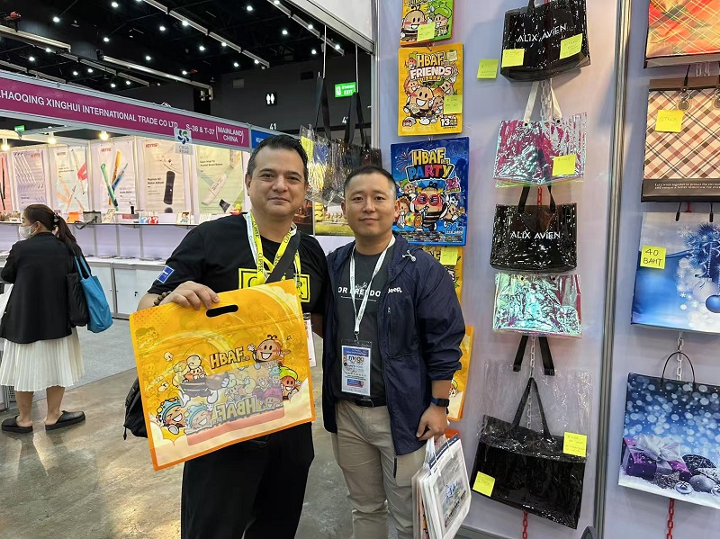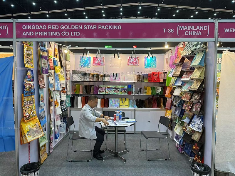 في جناحنا، كان التصميم نابضًا بالحياة وقمنا بعرض مجموعة واسعة من منتجات التعبئة والتغليف والطباعة الخاصة بنا. تشمل النقاط الرئيسية حلول التعبئة والتغليف الصديقة للبيئة والمصممة خصيصًا. على سبيل المثال، نعرضحقيبة تسوق هدايا بلاستيكية, حقيبة حمل هدايا التسوق غير المنسوجة, كيس تغليف المواد الغذائية والوجبات الخفيفة، وتغليف مستحضرات التجميل. وتشتهر هذه المنتجات بصناعتها الجيدة وطباعتها عالية الجودة، الأمر الذي جذب الكثير من الاهتمام من العديد من الزوار الدوليين، مثل الموزعين وأصحاب العلامات التجارية.