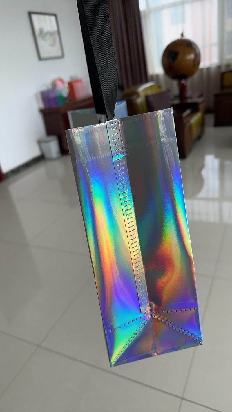 ما الذي يجعل هذا حقاحقيبة هدايا مغلفة بفيلم ليزرالمميز هو جاذبيتها البصرية الجميلة. تسمح عملية التصفيح بطباعة مشرقة وعالية الدقة تجعل شعارات العلامة التجارية وتصميماتها تبرز بوضوح استثنائي. يزيد هذا المظهر الجذاب من ظهور العلامة التجارية بشكل كبير عندما يستخدم العملاء هذه الحقائب في الأماكن العامة، مما يحول كل حقيبة بشكل فعال إلى إعلان مؤثر للعلامة التجارية.