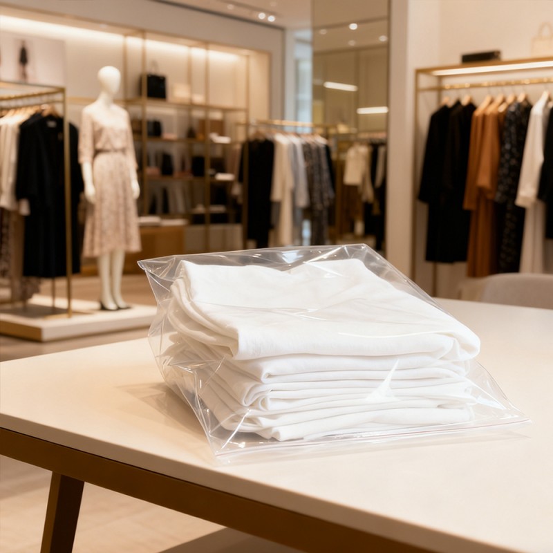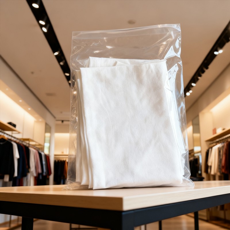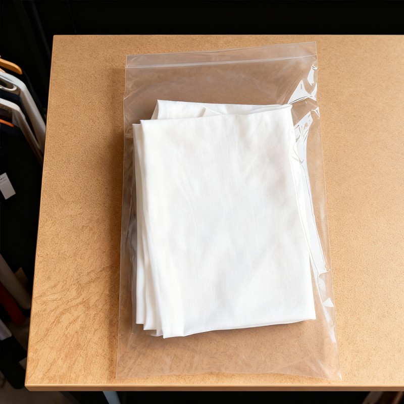 حماية الملابس: يمكن لأكياس البولي إيثيلين الخاصة بنا أن تكون بمثابة حاجز موثوق ضد الملوثات الشائعة. إنها تمنع بشكل فعال دخول الغبار والأوساخ والرطوبة أثناء التخزين والنقل. وهذا يضمن أن الملابس بدءًا من الحرير الرقيق وحتى القمصان القطنية المنعشة، من المستودعات إلى أيدي العملاء، يمكن أن تظل نظيفة ومرتبة. رؤية واضحة: توفر شفافية مادة البولي إيثيلين رؤية ممتازة للمنتج. يمكنه عرض لون الملابس وملمسها وتصميمها بشكل كامل، والمساعدة في تحديد المخزون بسرعة دون فتح كل حقيبة. سطح غير مطبوع: نظرًا لعدم وجود طباعة، فلا داعي للقلق بشأن تلويث الحبر للمنتج، مما يزيل خطر البقع أو العلامات القبيحة على المنتج. تأكد من أنها تبدو خالية من العيوب عند فتحها من العبوة. تعتبر هذه الميزة ضرورية للملابس البيضاء أو ذات الألوان الفاتحة أو ذات القيمة العالية. يمكن للعملاء أيضًا استخدام طرق أخرى لتمييز المنتجات وفقًا لاحتياجاتهم. ويمكن استخدامه أيضًا كعبوة عالمية للبيع. متينة ومقاومة للثقب: على الرغم من نسيجها الخفيف، فإن مادة البولي إيثيلين تتمتع بقوة ممتازة ومقاومة للتمزق. يمكنها تحمل المتطلبات الصارمة للمناولة والتعبئة والنقل، وتقليل مخاطر تلف الأكياس، وضمان سلامة منتجاتك طوال سلسلة التوريد بأكملها. فعالة اقتصاديًا وخفيفة الوزن: تحقق هذه الحقائب التوازن بين الأداء والاقتصاد. ويساعد وزنها الخفيف على تقليل تكاليف النقل، مما يجعلها خيارًا حكيمًا اقتصاديًا للشركات بجميع أحجامها، بدءًا من متاجر البوتيك الصغيرة وحتى الشركات المصنعة الكبيرة. مقاسات قابلة للتخصيص وسهولة الغلق: قابلة للتخصيص بأي حجم، ومناسبة لجميع المنتجات بدءًا من الجوارب والإكسسوارات وحتى الفساتين والسترات كاملة الطول. يمكن توفير هذه الأكياس بشكل لفات للتغليف الأوتوماتيكي عالي السرعة، أو كأكياس فردية للاستخدام اليدوي. تحتوي على شريط آمن ذاتي اللصق على الوجهين من أجل إغلاق سريع وسهل.