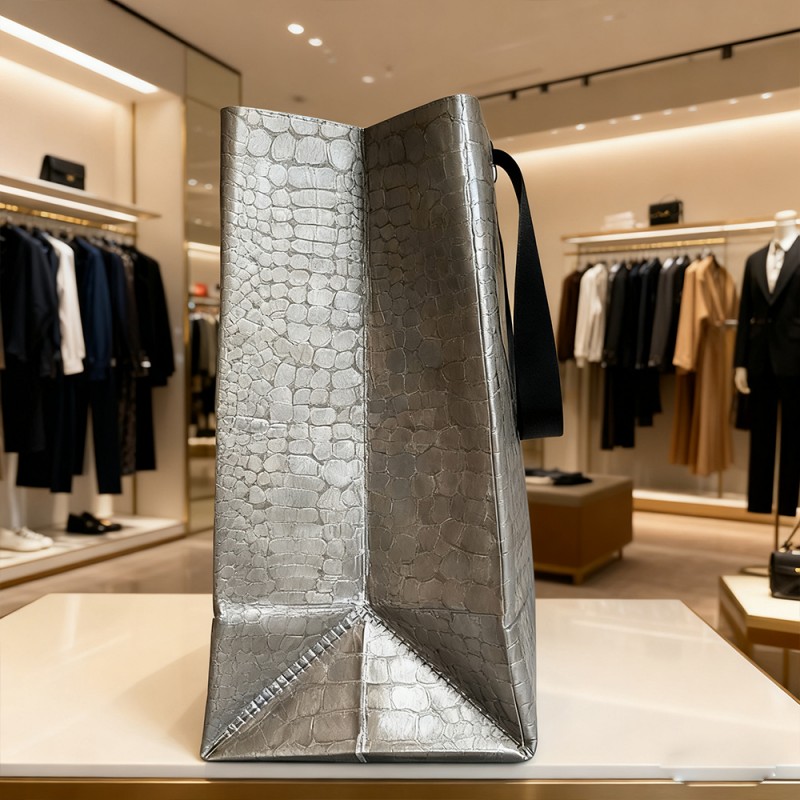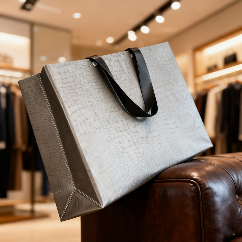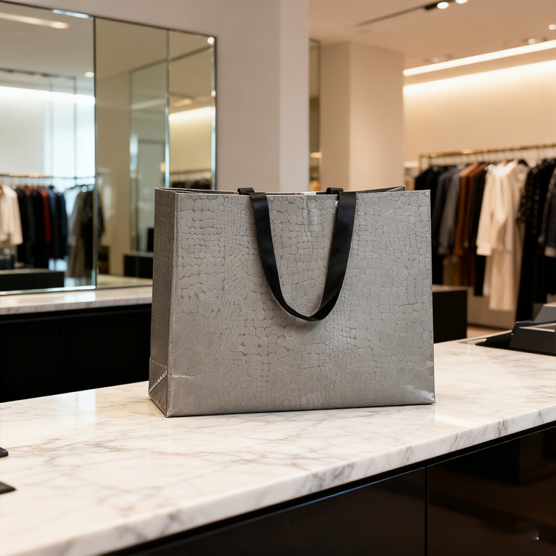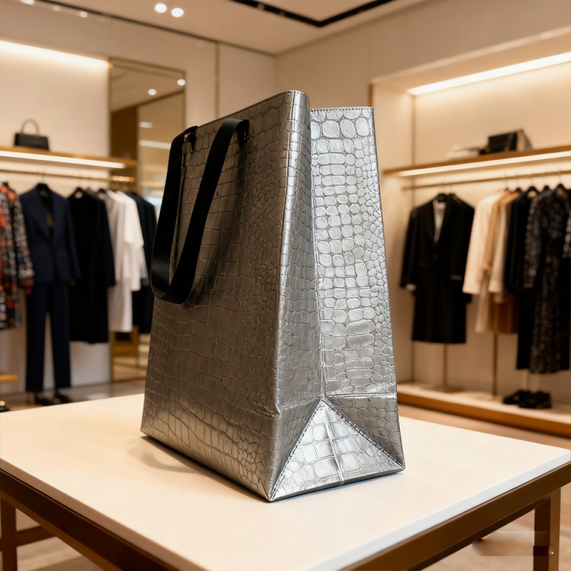 معالجة سطحية أنيقة: تخلق طبقة VCM سطحًا متطورًا يشبه الجلد مع لمسة ناعمة ومظهر ملفت للنظر. يتميز بلمسة نهائية شديدة اللمعان أو غير لامعة، والتي يمكن أن تنقل على الفور إحساسًا بالفخامة. متانة ممتازة: يتمتع بمقاومة ممتازة للخدوش والتآكل والتلف اليومي. وهذا يضمن بقاء المنتج في حالته الأصلية لفترة طويلة، مما يجعل الحقيبة قابلة لإعادة الاستخدام بشكل كبير. مقاوم للماء والرطوبة: يمكن لهذا المنتج أن يمنع بشكل فعال التدفق الزائد والرطوبة، مما يوفر حماية ممتازة للمحتويات. قابلية طباعة ممتازة: يعد سطح VCM الناعم تمامًا هو القماش المثالي للطباعة عالية الدقة. ويستخدم تقنيات طباعة الأوفست أو الطباعة بالحفر أو طباعة الشاشة لتوفير نسخة واضحة ونابضة بالحياة وملونة بشكل استثنائي لشعاراتك وأعمالك الفنية. التخصيص الشخصي: من خلال العمليات الثانوية مثل ختم الرقائق الساخنة (الذهبي والفضي) وطباعة الشاشة، يمكنك تحسين تصميمك بشكل أكبر. تضيف هذه الخيارات بعدًا ملموسًا ومتعدد الحواس إلى علامتك التجارية. هيكل متين: نستخدم مواد عالية القوة ومقاومة للتمزق لضمان الهيكل الكامل. تم دمج المقبض بشكل مثالي مع المنتج من خلال الضغط بالموجات فوق الصوتية، مما يوفر قوة موثوقة لحمل العناصر الثقيلة. إمكانية إعادة الاستخدام العملية: إن الجمع بين المتانة والتصميم الخالد يشجع العملاء على إعادة استخدام الحقائب في حياتهم اليومية. سيؤدي هذا إلى جعل التعبئة والتغليف الخاصة بك أداة تسويقية دائمة، والترويج لعلامتك التجارية لفترة طويلة بعد عملية الشراء الأولى.